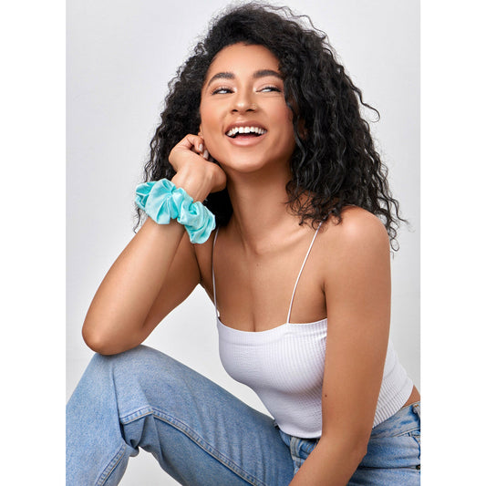 Aqua Blue Pure Silk Scrunchie