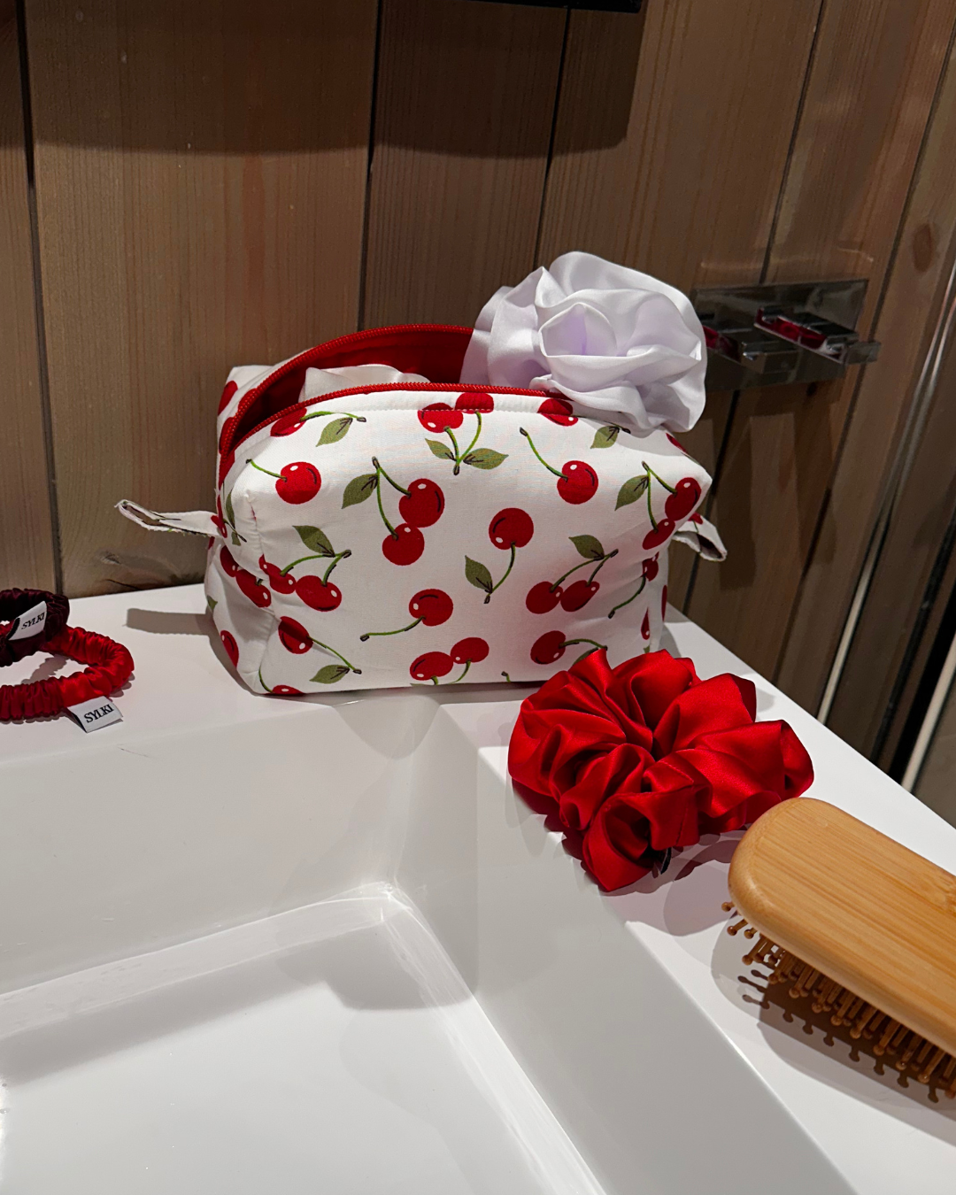 Red is the colour of the moment and this red cherry print will look aesthetically pleasing in your vanity or on the go.